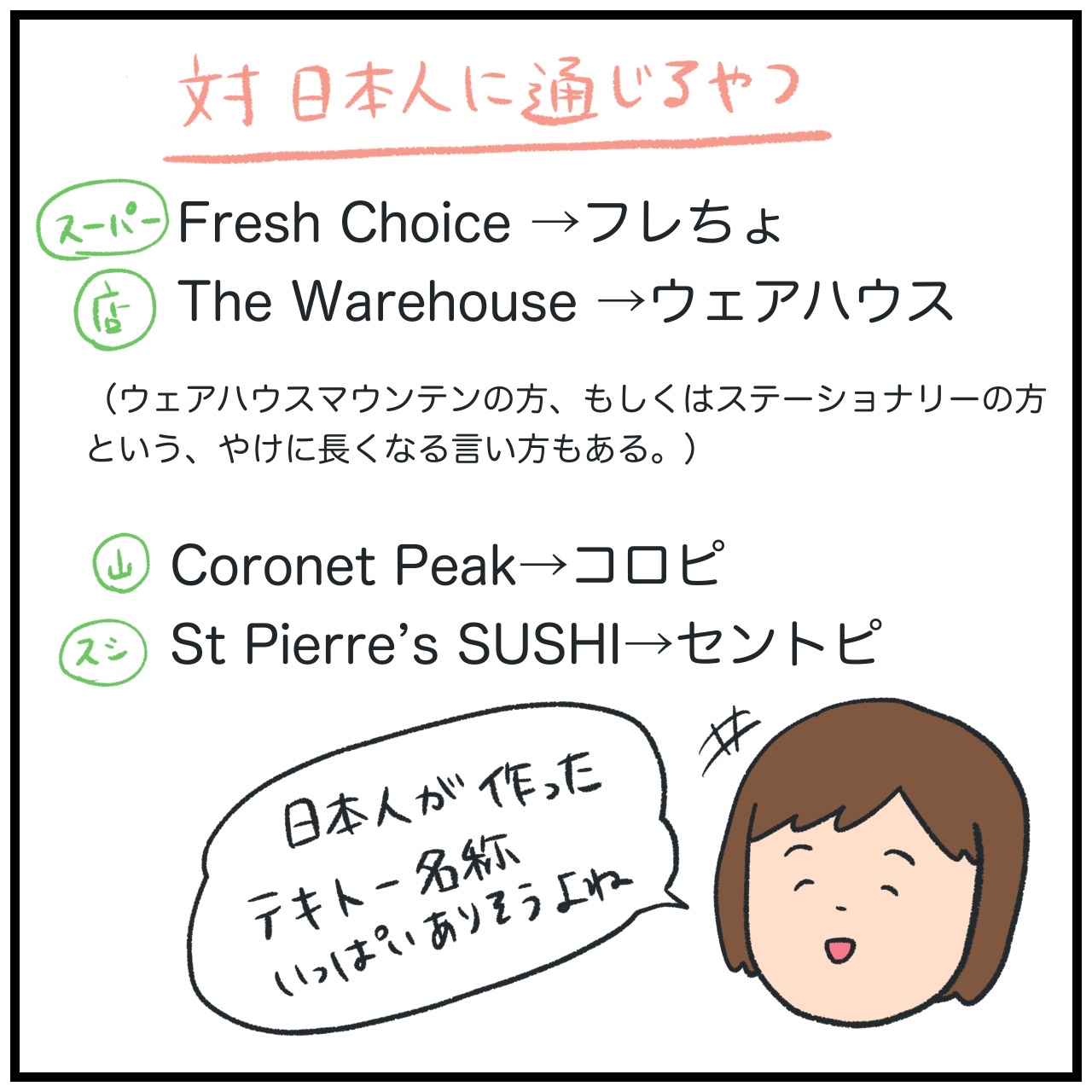 NZでの日本人同士の会話あるある 2023年06月28日 10:02 お店の名前パッと見読めないからうちが勝手に決めてる呼び方とかもある。 「ニュージーランド」カテゴリの最新記事 タグ :#海外#ニュージーランド < 前の記事次の記事 > コメント コメントフォーム 名前 コメント 記事の評価 リセット リセット 顔 星 情報を記憶 コメントを投稿する