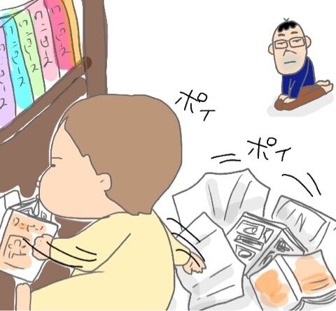 おとちゃんはカバーと漫画を合わせながら、巻数を順番に本棚に戻すのが日課です