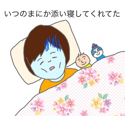 ぬいぐるみが同じ布団に入って添い寝してくれていました。