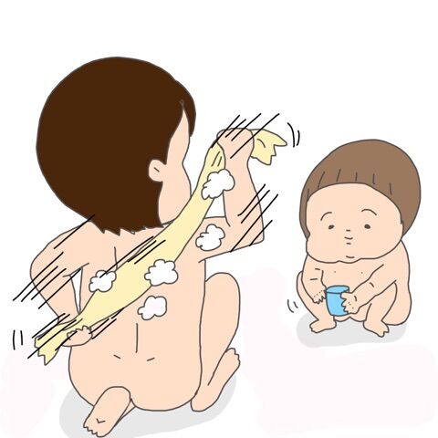 我が家も子供が小さい頃 片膝を立てて身体を洗っていた事を思い出し にやけてしまいました。